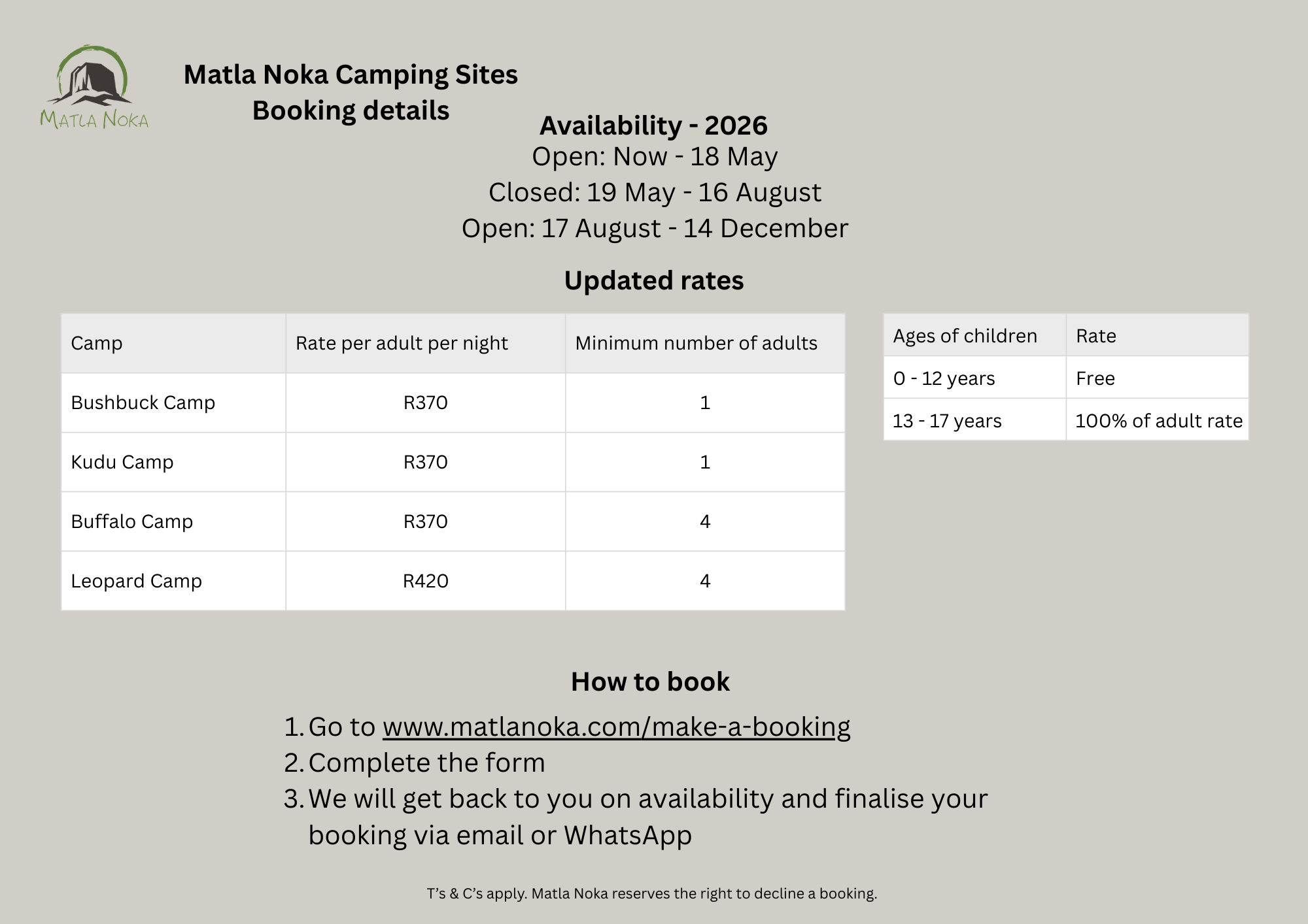 Matla Noka is set on 2700 hectares of private game reserve with 10km of river running through it.